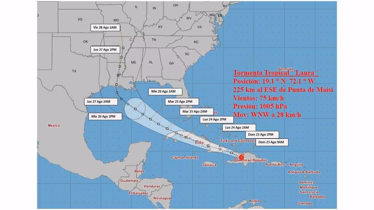 El próximo aviso de ciclón tropical sobre Laura se emitirá al mediodía de hoy.