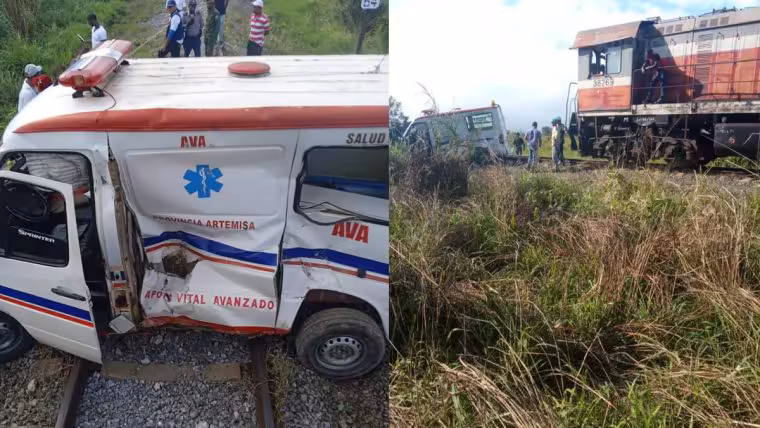 Accidente entre tren y ambulancia en Artemisa: choque en un paso a nivel sin heridos