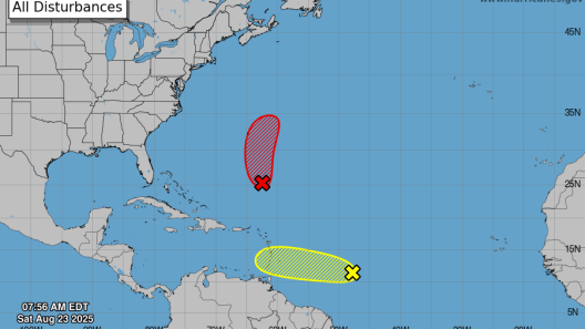 Se espera que hoy o esta noche se forme una depresión tropical. El domingo es probable su fortalecimiento a tormenta tropical mientras se desplaza al norte sobre el Atlántico suroccidental.