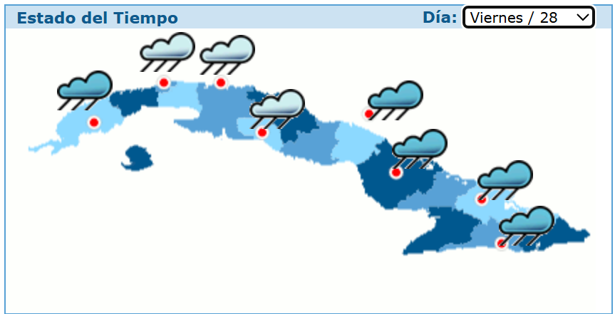 El informe del Instituto de Meteorología señala que el occidente amanecerá mayormente nublado, con algunas lluvias desde la madrugada. En el resto del país predominará un cielo parcialmente nublado, aunque en áreas de la costa norte pueden aparecer nublados ocasionales con lluvias aisladas.