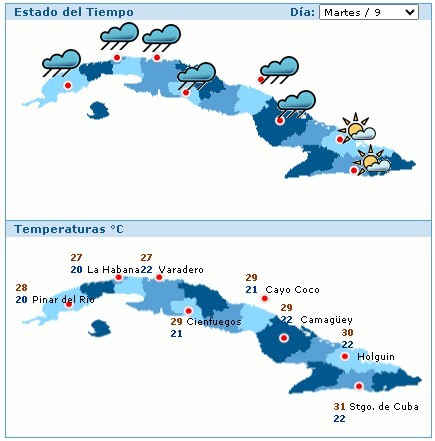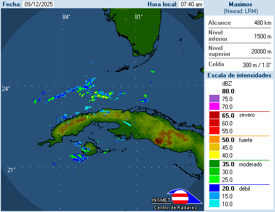 Los especialistas del INSMET señalaron que, debido a la posición del frente, no se espera entrada notable de aire frío. Por eso los valores térmicos presentan poca variación respecto a días recientes.
