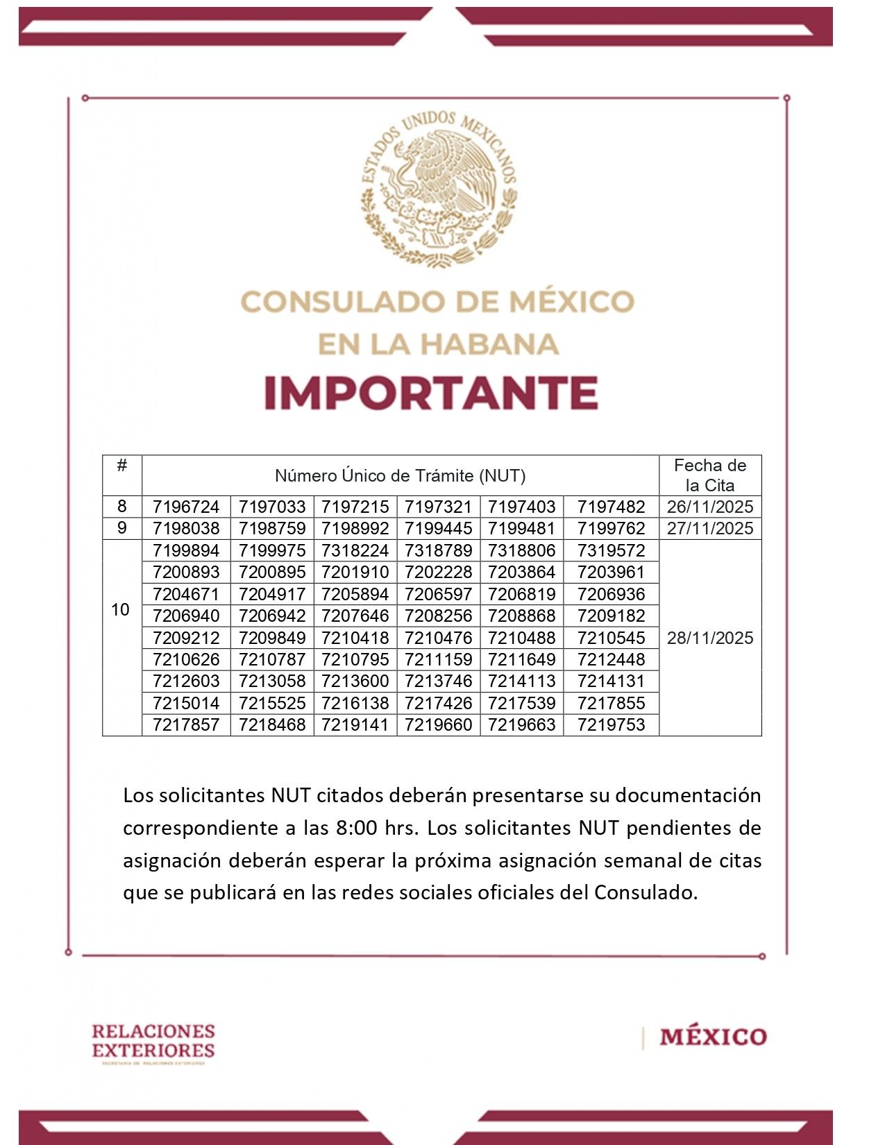 Consulado de México en La Habana publica nuevas citas NUT tras el registro obligatorio