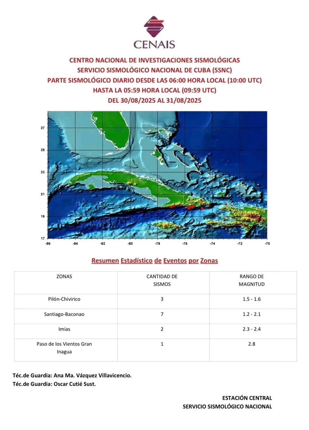 En la franja Pilón-Chivirico ocurrieron 3 movimientos con magnitudes de entre 1.5 y 1.6. Se trata de una de las zonas que con frecuencia reporta eventos de este tipo debido a su cercanía con fallas geológicas activas.