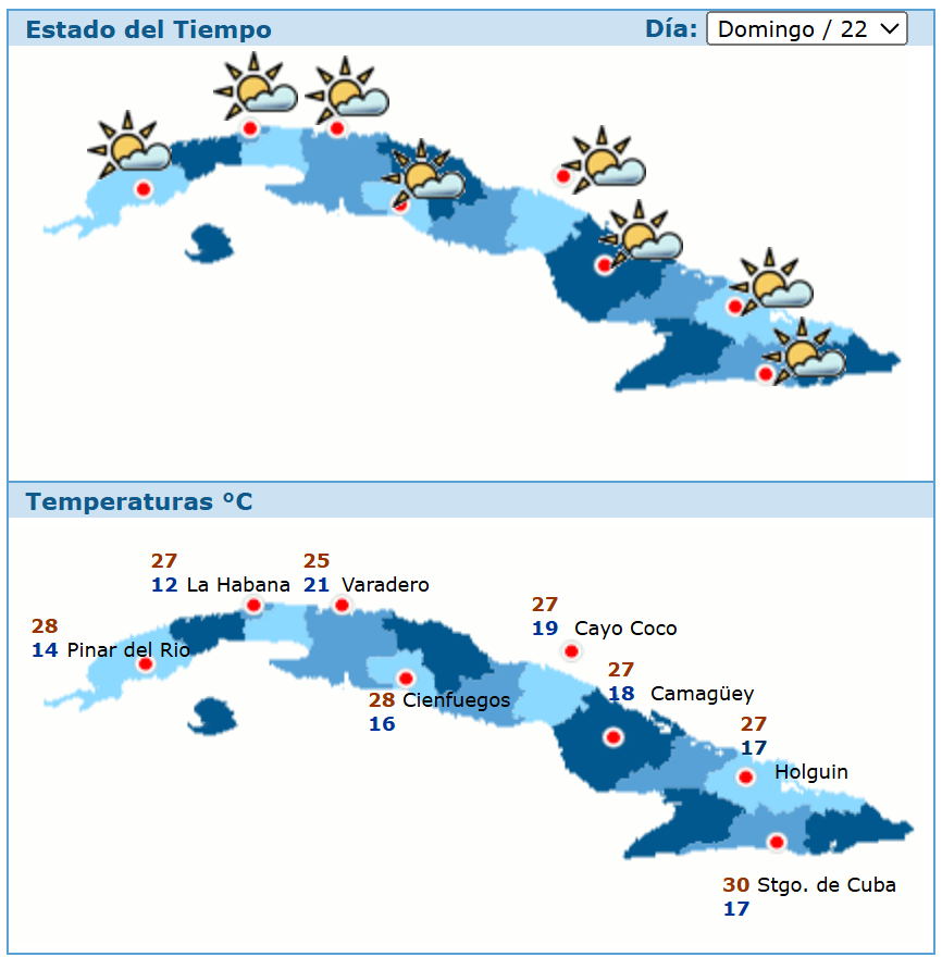 Cuba amanece este 22 de marzo con un panorama meteorológico estable y sin señales de precipitaciones importantes. El pronóstico del Instituto de Meteorología apunta a una jornada de poca nubosidad en la mañana y condiciones mayormente secas en casi todo el país.