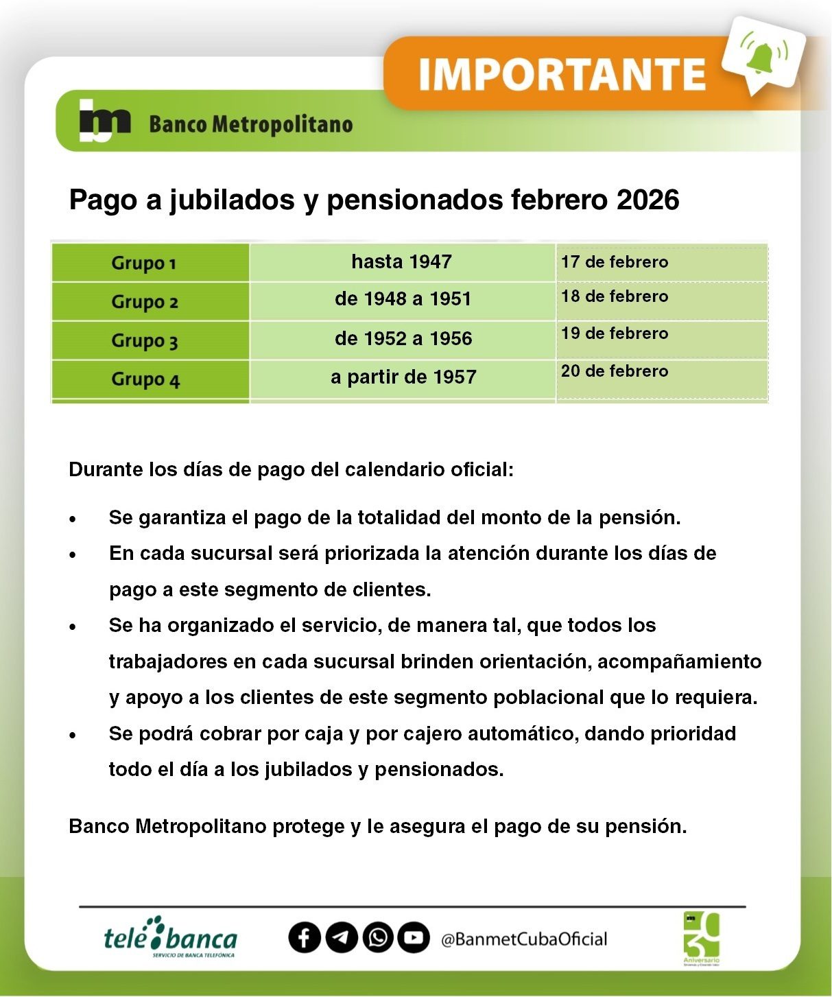El pago a jubilados y pensionados en La Habana correspondiente a febrero 2026 arranca este martes con un esquema organizado por grupos. El proceso se extenderá durante cuatro jornadas consecutivas.
