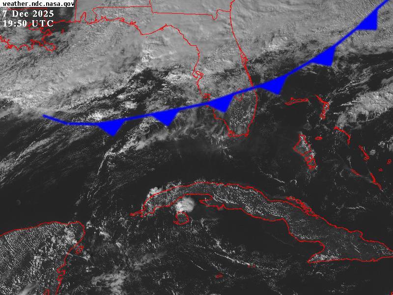 El sistema frontal desciende por Florida desde la noche del domingo. Si logra entrar al país, se convertirá en el frente frío número 6 de la temporada. Su acercamiento ya incrementa el contenido de humedad sobre el noroeste cubano, donde se observan nublados y chubascos aislados.