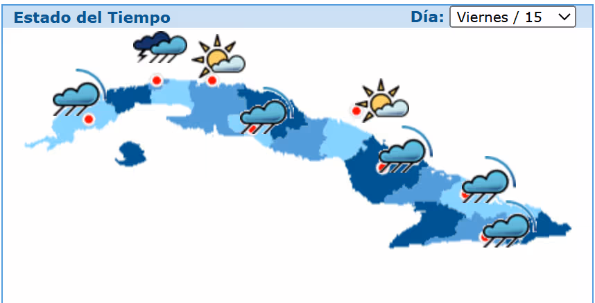 El Instituto de Meteorología pronostica para este viernes un día de calor intenso en gran parte del territorio, con lluvias en zonas puntuales del interior y el sur.