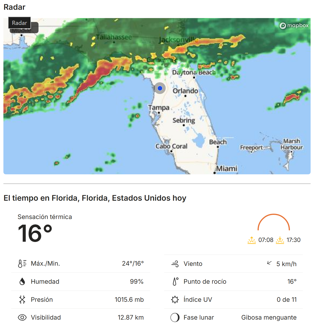 - Viento: 5 km/h