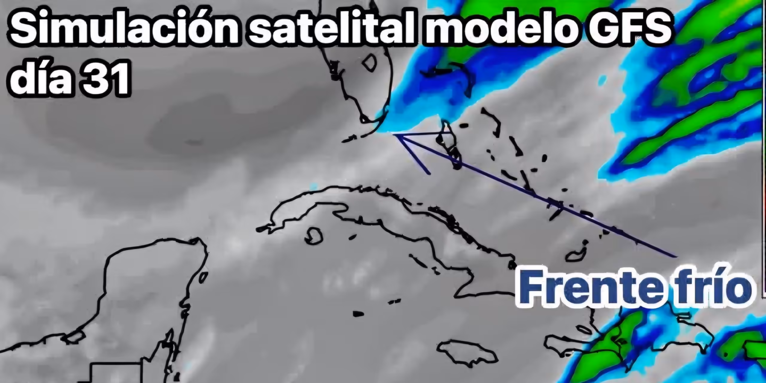 Según los pronósticos, este sistema alcanzará el occidente de Cuba entre el 30 y el 31 de diciembre. Detrás del frente llegará una masa de aire más fría.