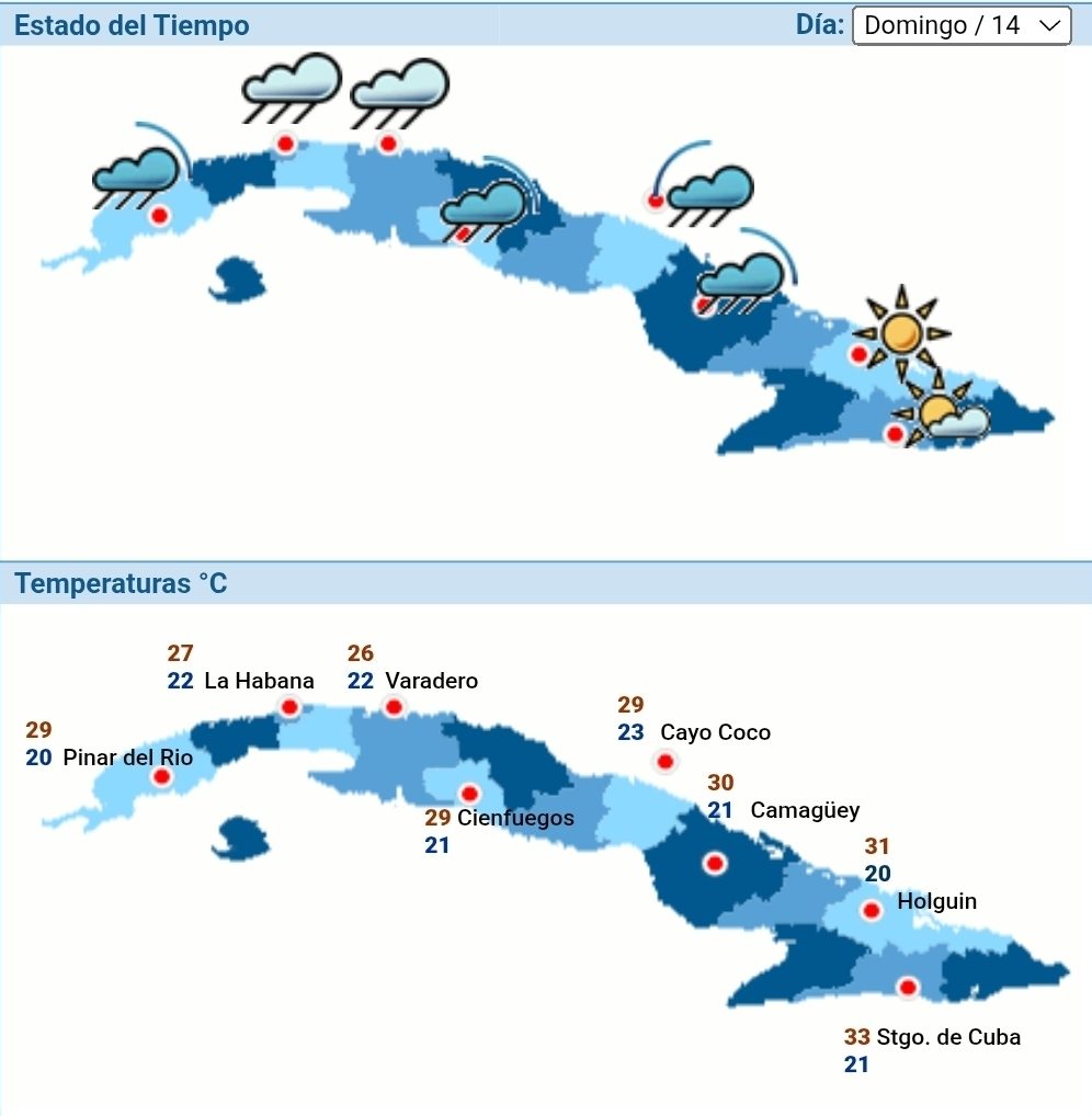 Lluvias en el occidente y calor moderado: así estará el tiempo en Cuba este domingo