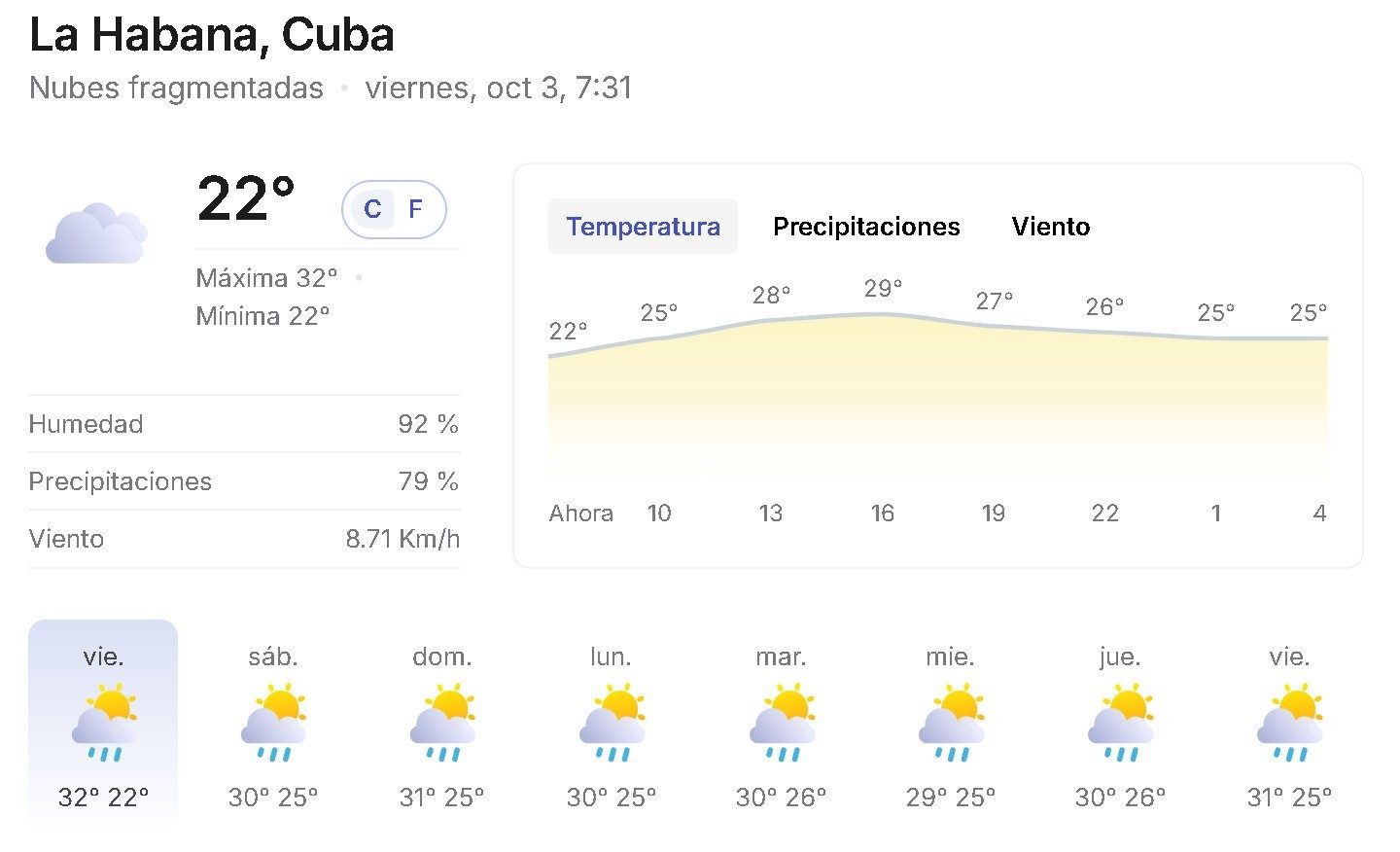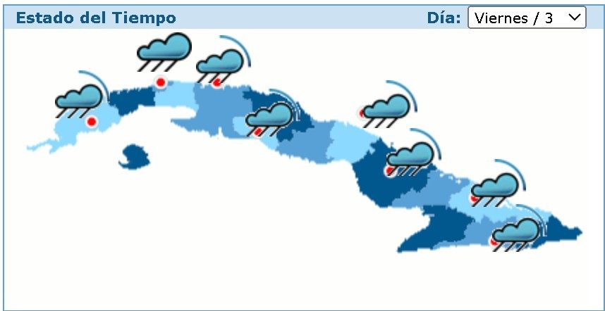 Pronóstico del tiempo en Cuba para este viernes con nublados y algunas lluvias en el oriente