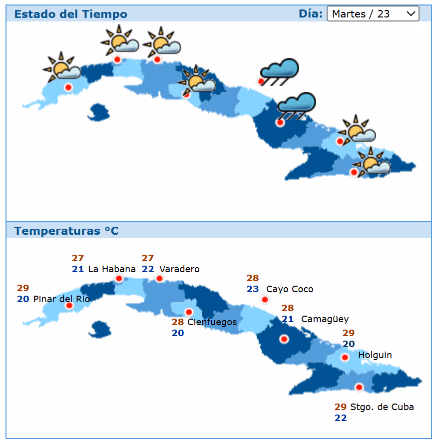 Pronóstico del tiempo en Cuba para el 23 de diciembre: chubascos en el norte y temperaturas cálidas
