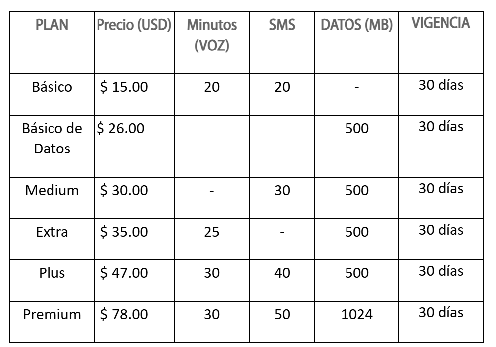 Plan Extra tiene un precio de 35 dólares e incluye 25 minutos de voz y 500 megabytes.