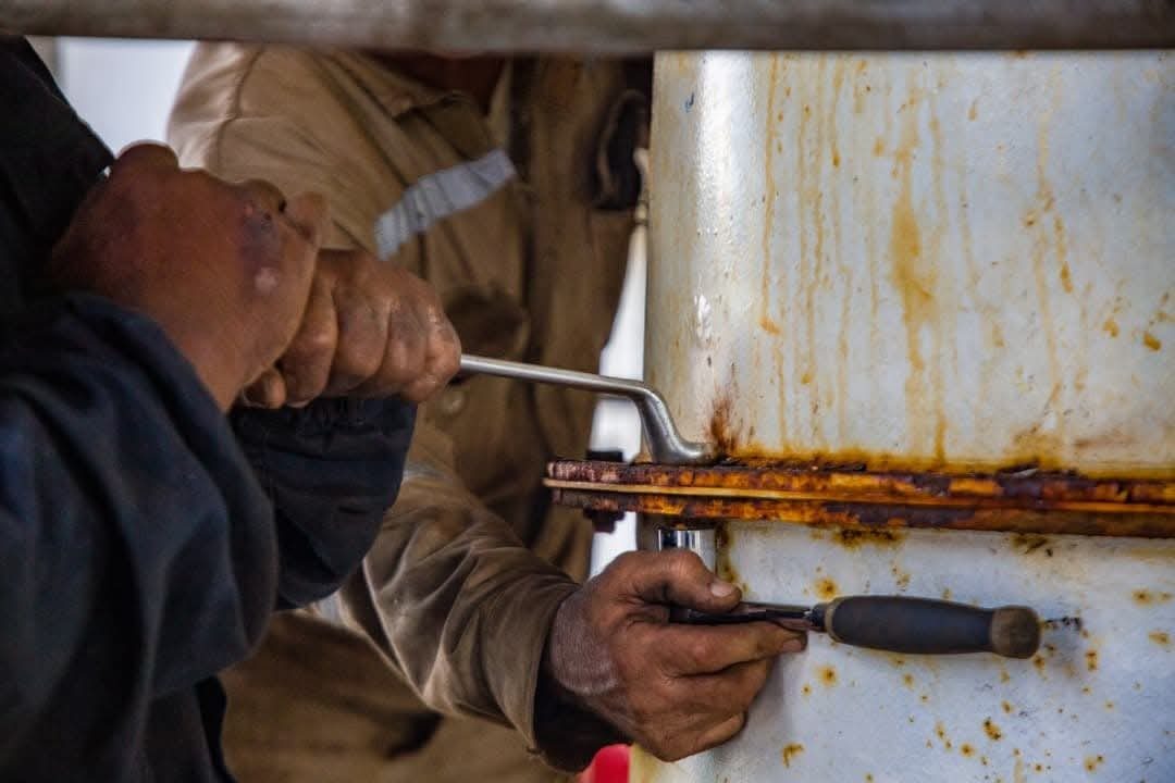 La primera etapa comprende una revisión técnica a flote. En este punto, especialistas del astillero inspeccionan los sistemas de comunicación, climatización, gobierno y propulsión para determinar las acciones específicas que requiere la embarcación. Se trata de un diagnóstico completo que permitirá definir el alcance real de la reparación.