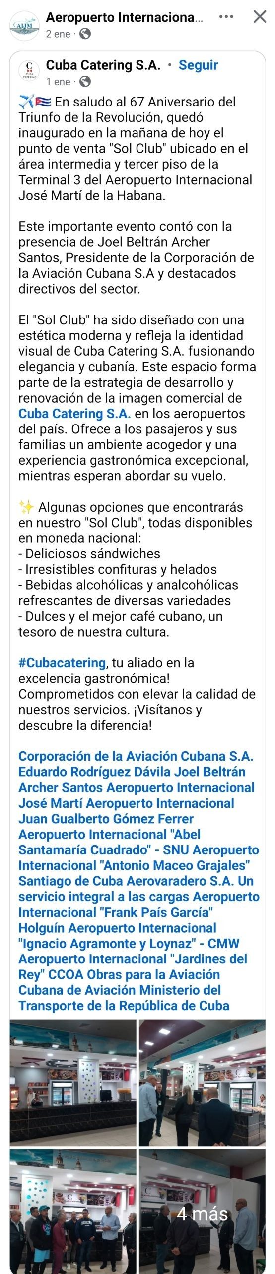 El 1 de enero abrió sus puertas el llamado Sol Club en la Terminal 3 del Aeropuerto Internacional José Martí.