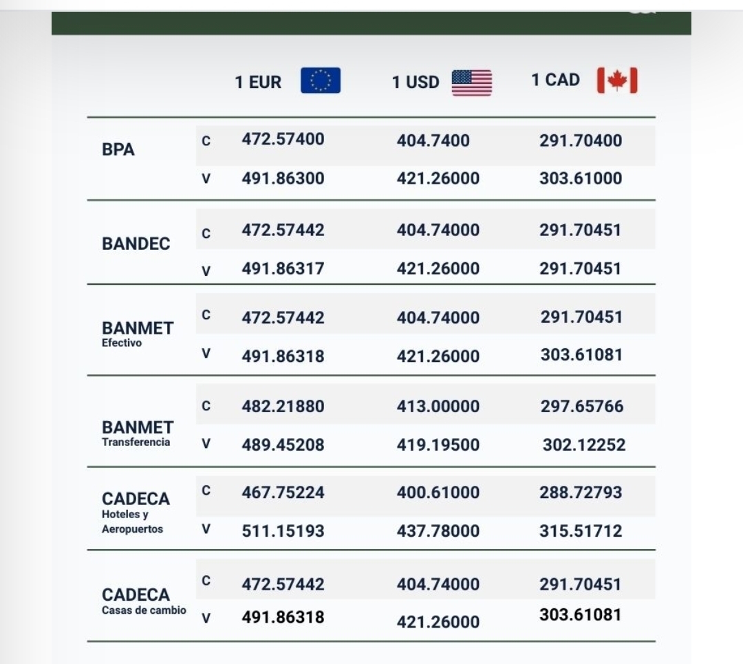 Tipos de cambio en CADECA y bancos cubanos