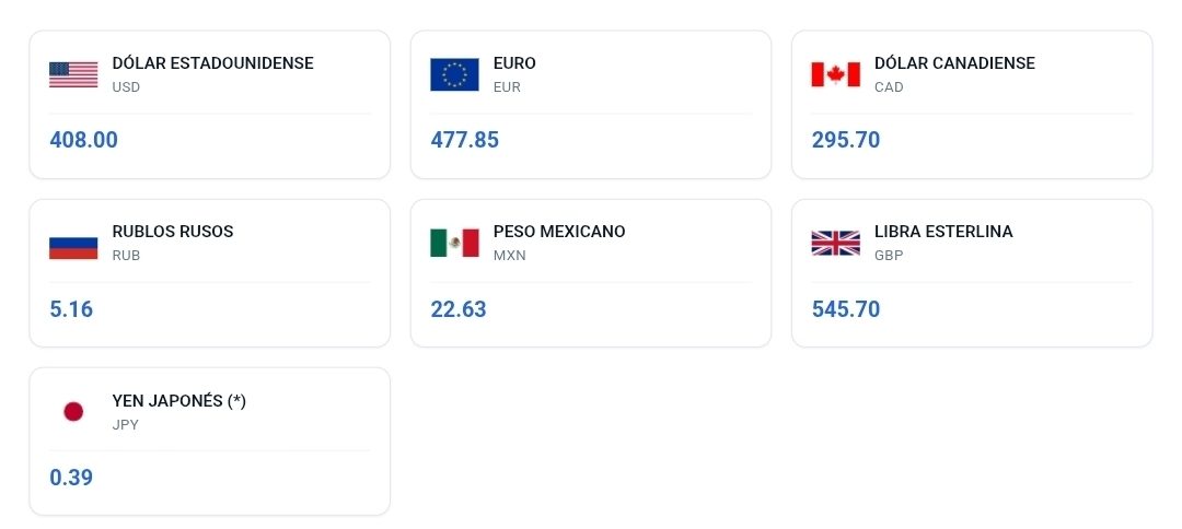 Según la actualización oficial, el dólar estadounidense se fija hoy en 408 pesos cubanos, mientras que el euro se sitúa en 477.85 pesos cubanos.