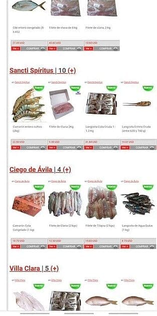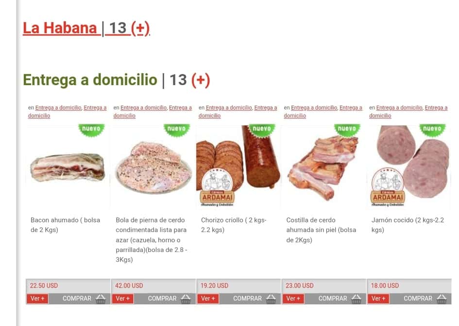 Ahora mismo es posible comprar gran variedad de carnes, como cerdo, res, carnero, conejo, pollo, y además, diversos tipos de pescados en dependencia de la provincia de Cuba a la que se desea hacer el envío.