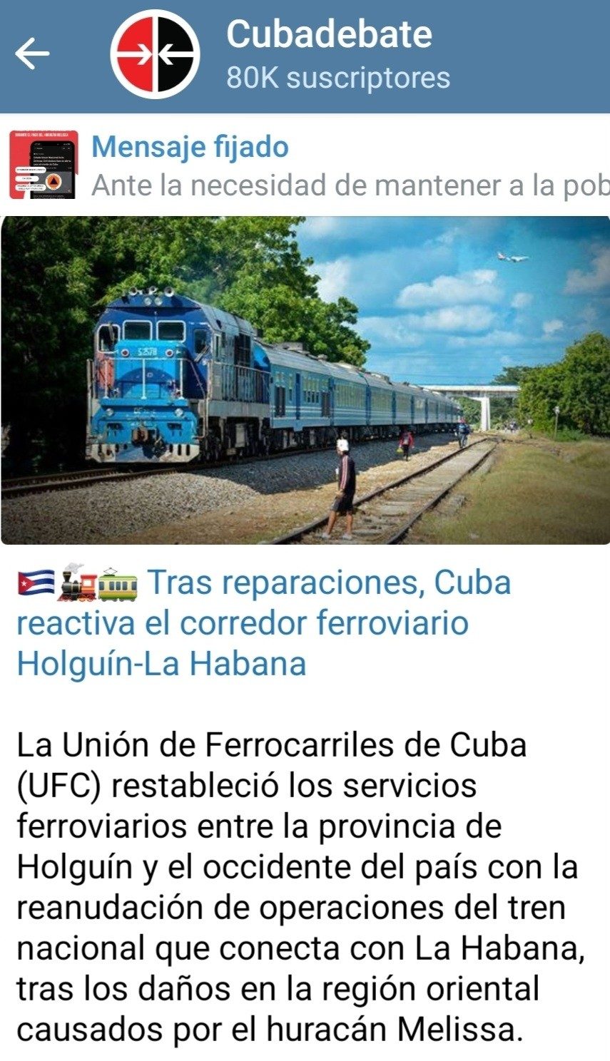 La Unión de Ferrocarriles de Cuba (UFC) informó que el servicio vuelve a operar tras las reparaciones realizadas en la vía oriental, afectada por el huracán Melissa.