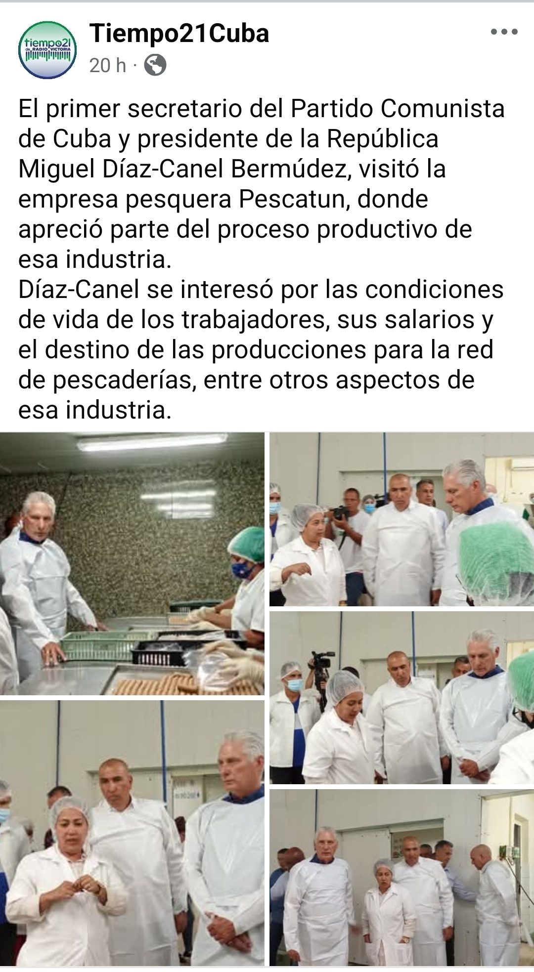 Miguel Díaz-Canel reapareció este martes en la provincia de Las Tunas, donde supervisó la producción de croquetas y otros derivados del pescado en la empresa pesquera Pescatun.