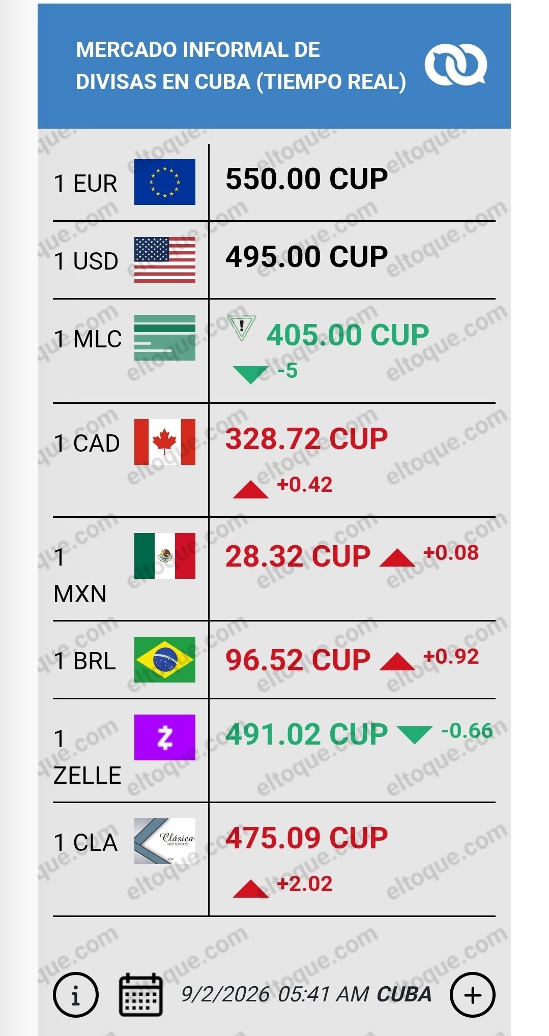 1 EUR = 550 CUP