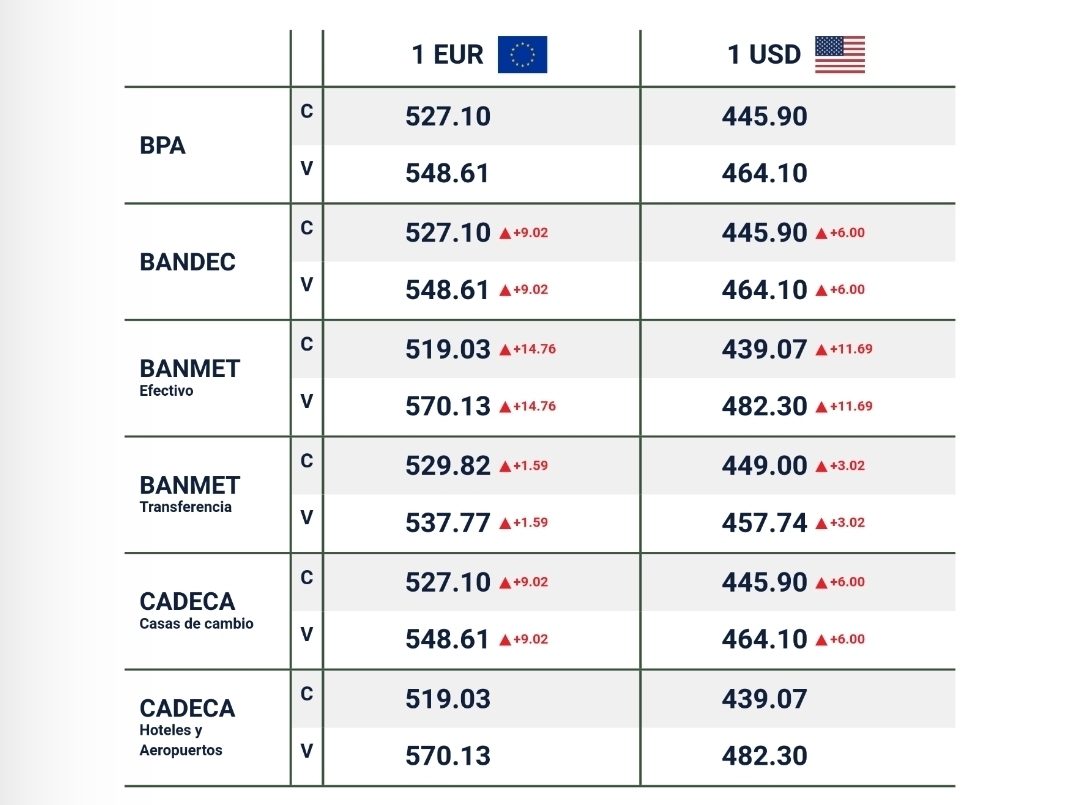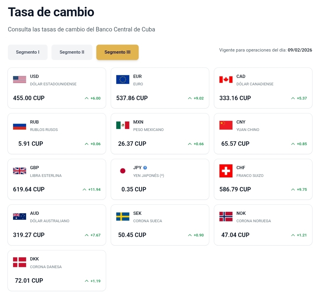 Según las tasas publicadas por el Banco Central de Cuba. El ajuste impacta de forma directa en las operaciones estatales, en las Cadecas y, como ya es habitual, vuelve a trasladar presión al mercado informal de divisas, donde las cotizaciones siguen muy por encima de los valores oficiales.