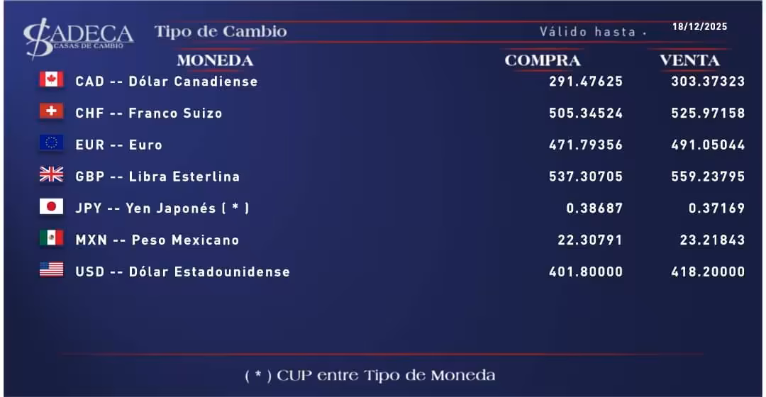La tasa flotante se aplica exclusivamente a la población en CADECA y en las casas de cambio autorizadas. No elimina las otras tasas oficiales que continúan vigentes para distintos segmentos de la economía.
