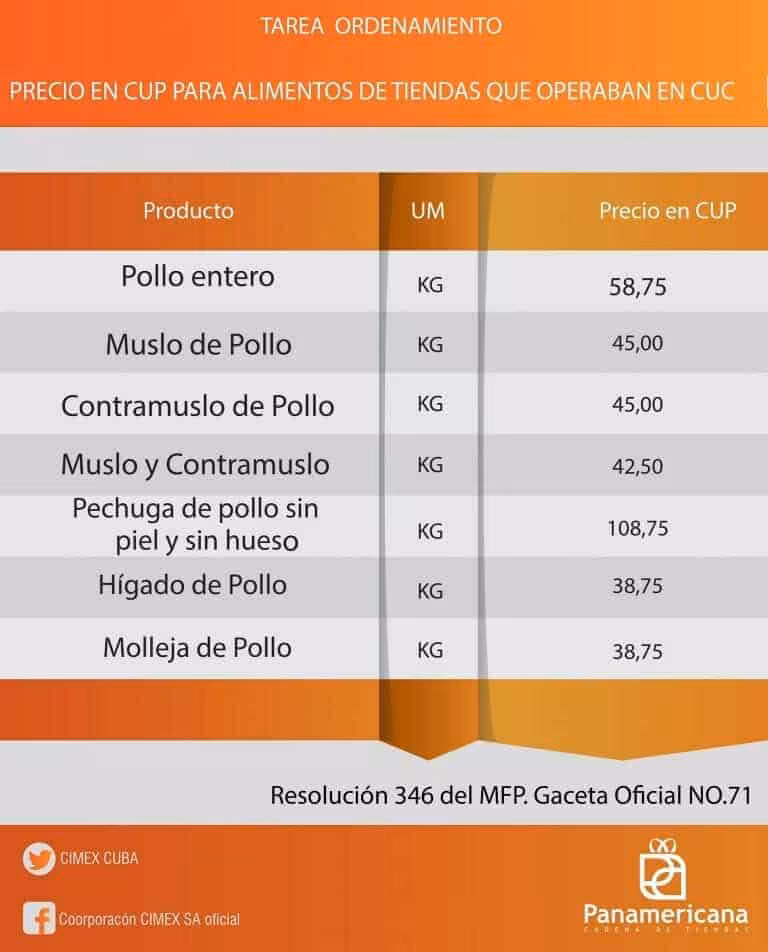 3. Todo esto deja un incremento de un 4 5 % teniendo en cuenta que estos precios han sido fijados con la tasa de cambio del cuc a 25cup y ahora la nueva es a 24
