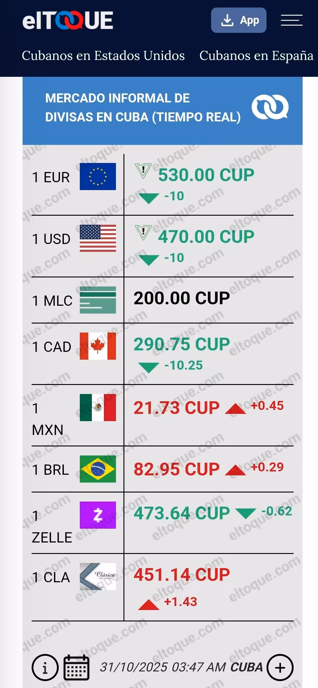 1 USD = 470 CUP