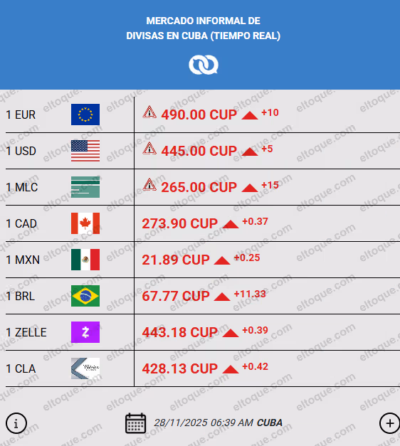 El Zelle subió a 443.18 CUP y la criptomoneda CLA a 428.13 CUP.