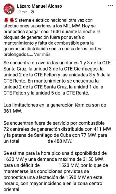 Por su parte, el periodista Lázaro Manuel Alonso también destacó la situación del sistema eléctrico, alertando sobre los cortes prolongados.
