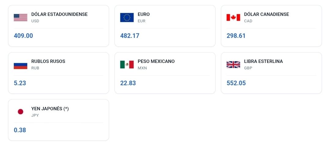 A diferencia del euro, el dólar no presenta contradicciones entre ambos mercados. En el mercado oficial se mantiene estable en 409 pesos cubanos, sin variación respecto al día anterior.
