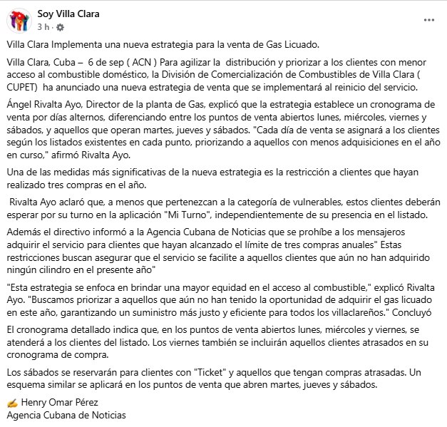 Aunque CUPET asegura que la medida busca “un suministro más justo y eficiente”, lo cierto es que los villaclareños deberán adaptarse a un esquema rígido, con listados y topes que reflejan la profundidad de la crisis energética que atraviesa Cuba.