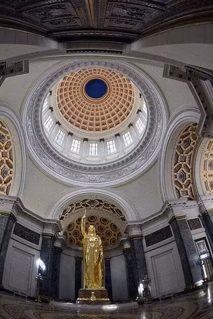 El Capitolio Nacional con su fachada neoclásica, si bien está inspirado en el Capitolio de Washington, toma prestados algunos elementos propios de la Basílica San Pedro de Roma y el Panteón de París, el edificio presenta y una cúpula que alcanza los 91,73 m de altura.