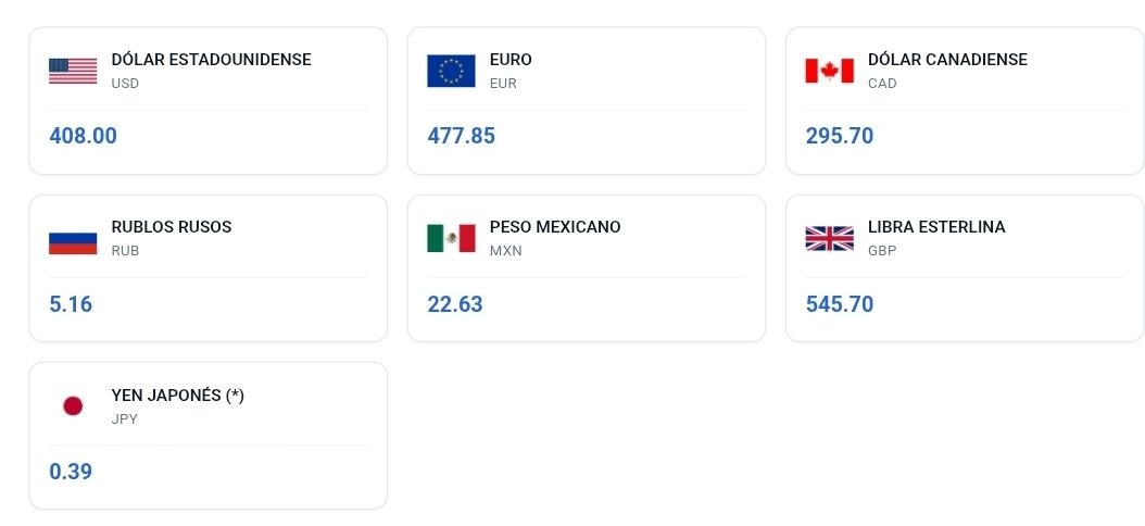 De acuerdo con la información publicada este 21 de diciembre por el Banco Central de Cuba, la tasa de cambio oficial fija el valor del dólar estadounidense en 408 pesos cubanos.