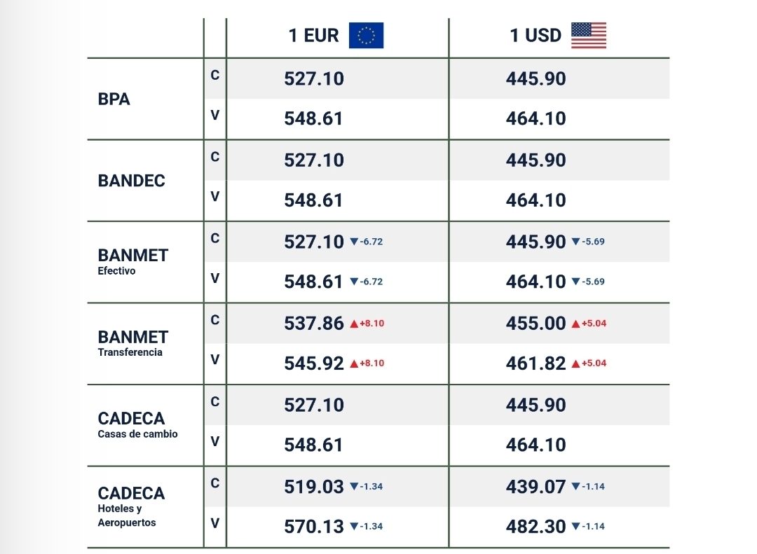 El euro, en cambio, registra una subida y se fija en 542 pesos cubanos, consolidando un nuevo ajuste al alza dentro del mercado estatal.