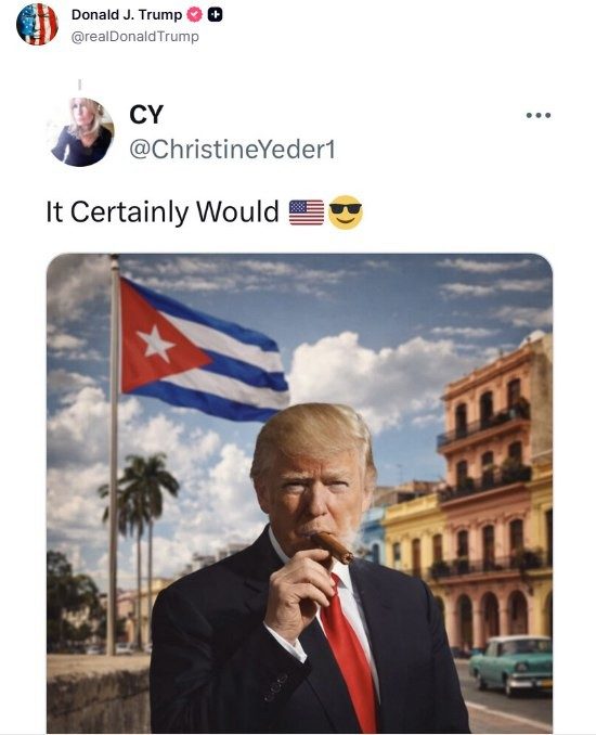 Otros han ido más lejos y la han leído como una insinuación de dominio o incluso como una señal de una hipotética entrada en Cuba. No existe confirmación oficial que respalde ese tipo de interpretaciones.