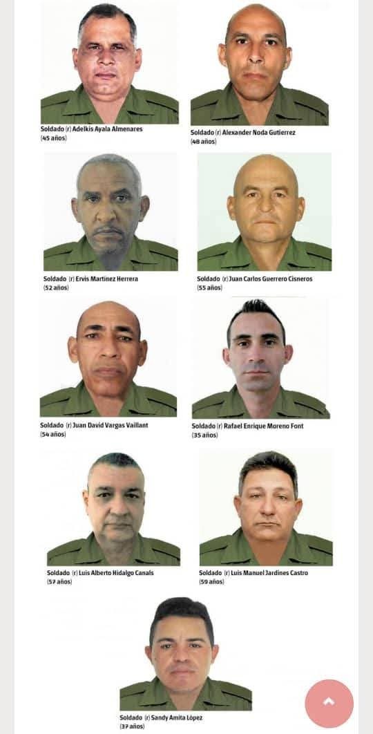 En este grupo se encuentran además el primer suboficial Giorki Verdecia García y otros efectivos de rango similar, cuyas edades oscilaban entre los 30 y los 59 años.
