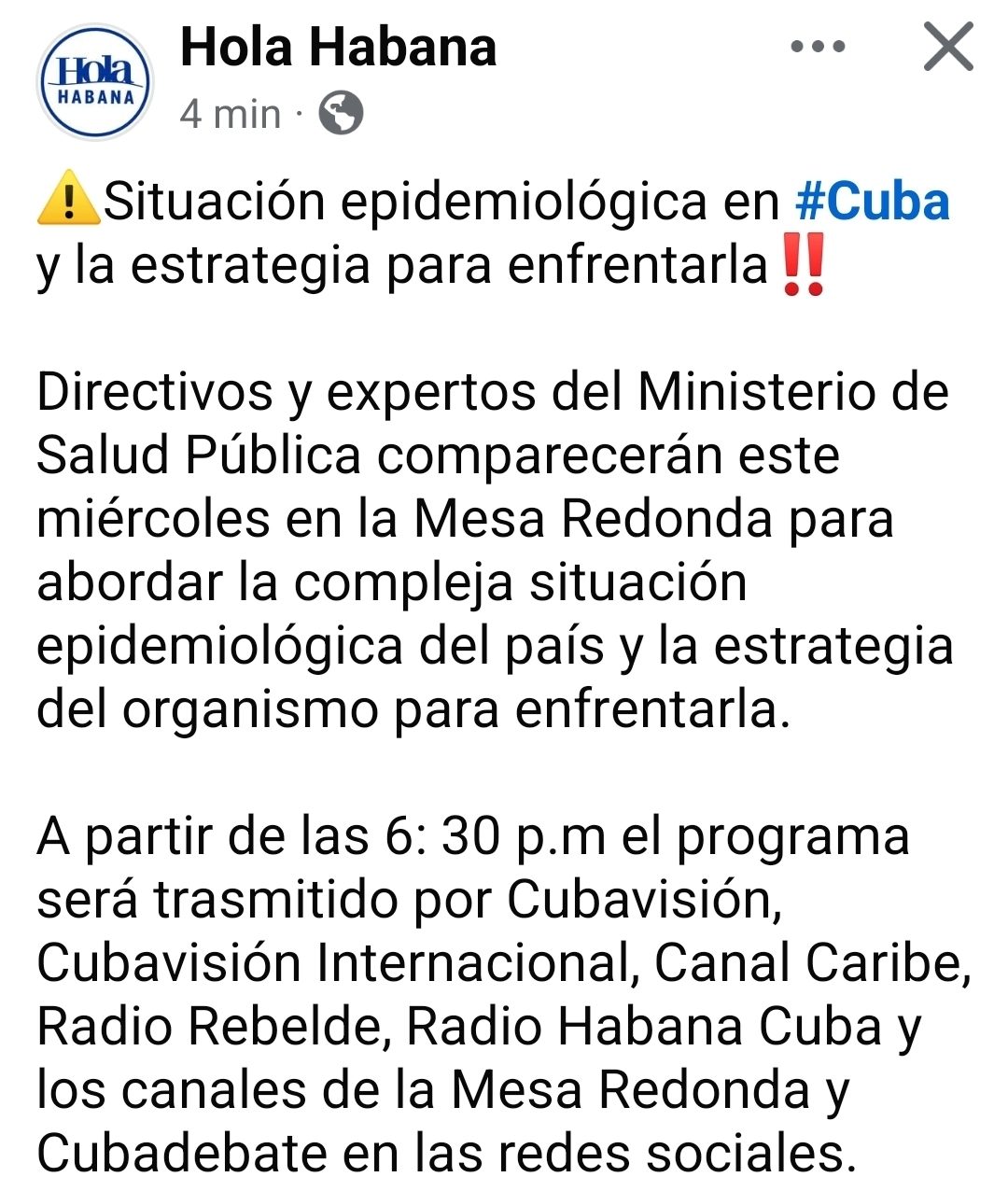 Directivos y expertos del Ministerio de Salud Pública comparecerán este miércoles en la Mesa Redonda para abordar la compleja situación epidemiológica nacional y explicar la estrategia del organismo para enfrentarla.
