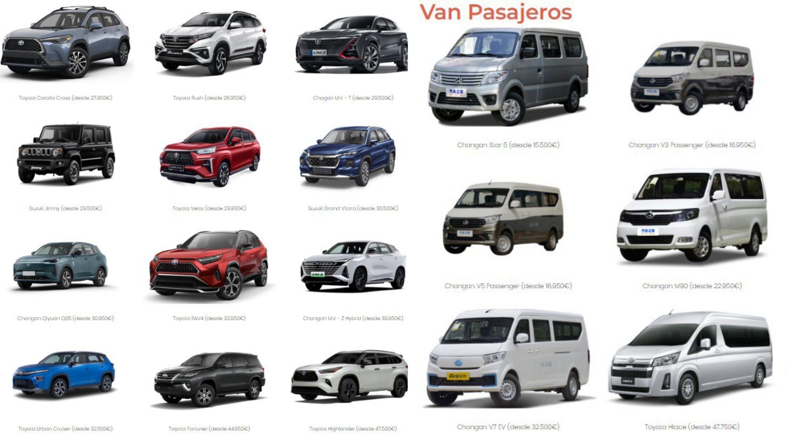 Para transporte de carga y pasajeros, la oferta incluye modelos como el Changan V3 Cargo en 13 950 euros y el Suzuki EECO en 16 500 euros.