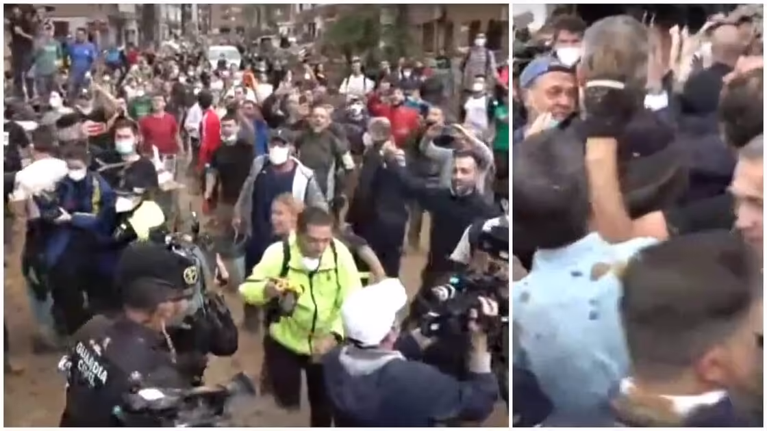 Centenares de vecinos, visiblemente afectados por la catástrofe, rodearon a la comitiva con gritos de «asesinos» y lanzaron barro a las autoridades. La policía intervino para proteger a los reyes y a las demás autoridades, mientras la situación se volvía cada vez más hostil.