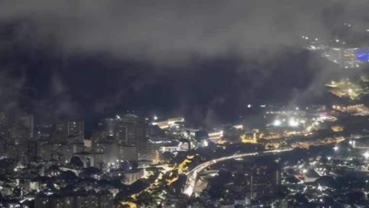 Videos compartidos en plataformas digitales mostraron destellos de fuego y al menos dos columnas de humo visibles desde distintos puntos de la ciudad.