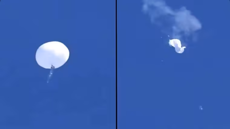 Justo cuando el reloj marcaba las 2:39 de la tarde del sábado un misil aire-aire guiado AIM-9X Sidewinder, disparado desde un avión F-22, desinfló el globo. El suceso se produjo mientras volaba sobre aguas territoriales de Estados Unidos por lo que los escombros no representaron un peligro para la vida humana.