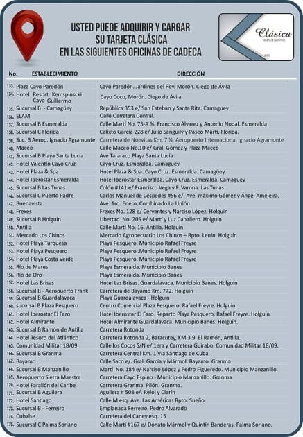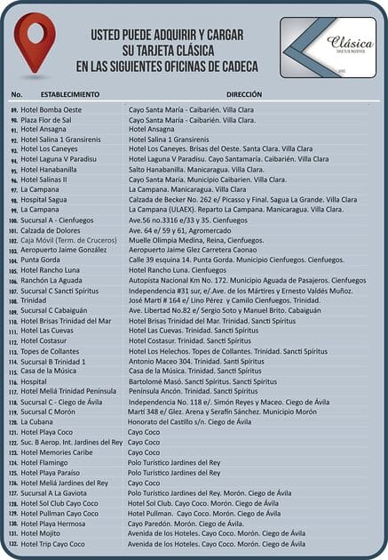 Los clientes pueden adquirir la Tarjeta Clásica USD cubana por un precio de venta de 4.00 USD (o en las divisas extranjeras aceptadas en el país a la tasa de cambio vigente). La misma tiene una vigencia de 5 años, pero, atención, el saldo no es reembolsable en caso de salida del país. Solo podrás extraer efectivo en pesos cubanos en la red de CADECAS y bancos.