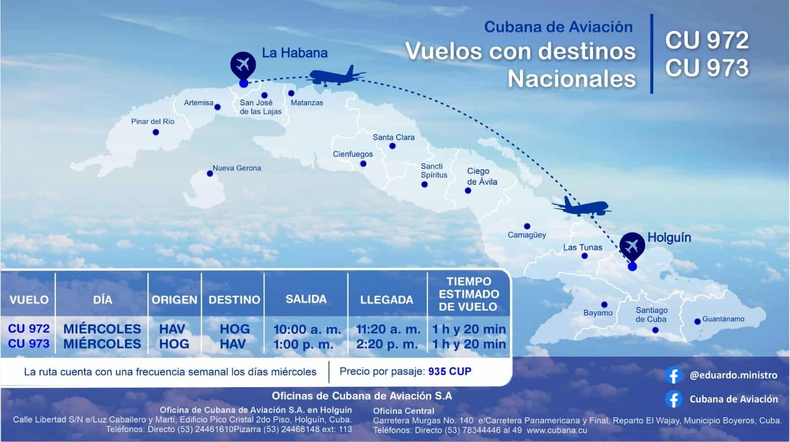 Tienen una frecuencia semanal los miércoles. El precio del pasaje es de 935 CUP.