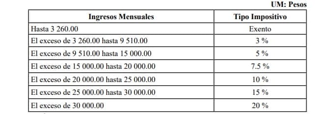 • Impuesto sobre las ventas o los servicios: 10% del total de los ingresos mensuales.