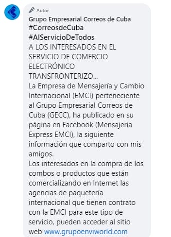 La comercialización de esta mercancía se realizará mediante el sistema de Declaración de Aduanas Globales. Ello permitirá a Correos de Cuba “nacionalizar las mercancías y realizar las operaciones postales y de logística integrada necesarias para entregarlas a los clientes”.