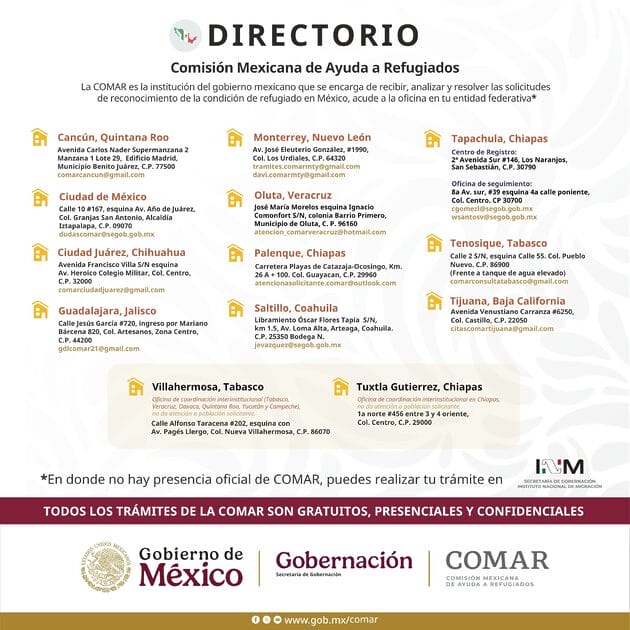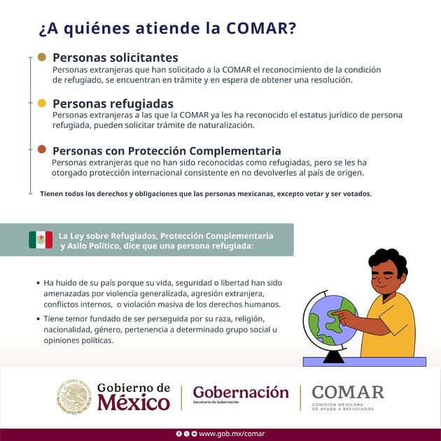 Mientras se tramita la solicitud de asilo, con la constancia de COMAR los migrantes pueden solicitar al INM una tarjeta de visitante por razones humanitarias, la cual les permite trabajar y permanecer legalmente en México.