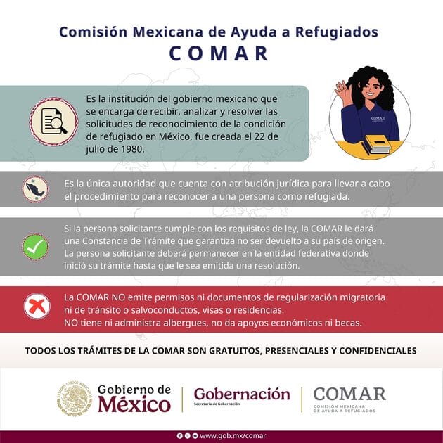 Presentación de la solicitud: Los migrantes tienen 30 días hábiles a partir de su llegada a México para presentar su solicitud ante COMAR o el Instituto Nacional de Migración (INM).
