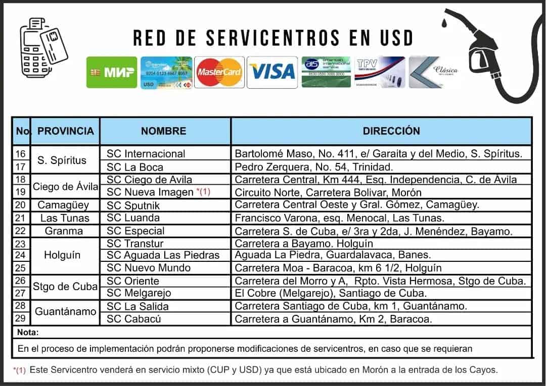Tanto en este listado, como en el anterior, hay servicentros con servicio mixto. O sea, venderán combustible en la isla tanto en pesos cubanos como en dólares.